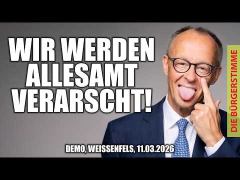 ![]() | Lügen-Fritz: Den Sozialstaat können wir uns nicht mehr leisten - Milliarden in die Ukraine schon! - Friedensdemo in Weißenfels: Protest gegen Eskalation im Nahen Osten und deutsche MitverantwortungAm 11. März 2026 versammelten sich auf dem Marktplatz in Weißenfels (Sachsen-Anhalt) zahlreiche Bürger zu einer Friedensdemonstration. Die Kundgebung, die regelmäßig stattfind... zum Artikel |